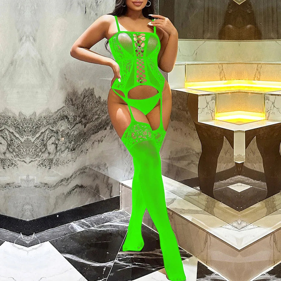 • 1 x Alluring Fishnet Bodysuit Open Crotch Teddy Stockings For Women
